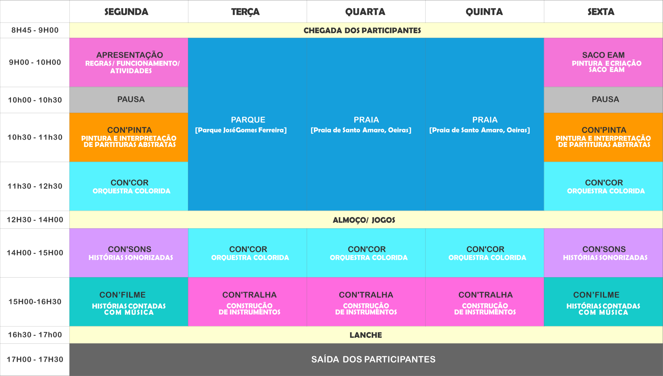Ao longo das 4 semanas, poderão existir alterações na organização dos nossos Ateliers